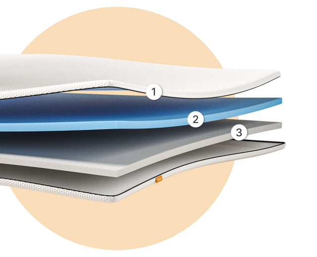 부드러운 쿠션감을 제공하며 통기성이 뛰어나 수면 중 체온의 상승을 조절해 줍니다. 밤에 더위를 많이 타는 타입이라면 이쪽면을 위로 놓고 써주시는 것을 추천드립니다. HRX폼의 단단함에 비해 더 구름처럼 푹신하고 부드러운 지지력과 편안함을 제공해줍니다.